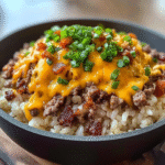 Bacon Cheeseburger Rice Skillet is a hearty one-pan dish that brings together the beloved flavors of a classic cheeseburger in an easy-to-make meal. With crispy bacon, juicy ground beef, and gooey cheddar cheese atop fluffy rice, this recipe is perfect for busy weeknights or cozy weekends. Its vibrant colors and comforting aroma will impress everyone at the dinner table. Plus, you can customize it with your favorite toppings for an extra special touch!