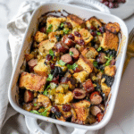 In summary, this Rustic Sausage, Chestnut & Kale Stuffing Casserole is not just easy to make; it’s also incredibly versatile and adaptable based on your tastes and preferences. By following these tips on cooking sequences, ingredient swaps, and storing methods, you’ll create a dish everyone will love—perfectly golden brown on top yet packed full of delightful flavors inside! Give it a try next time you’re looking to impress guests or treat yourself after a long day!