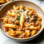 This creamy beef pasta recipe brings friends and family together over delightful bites filled with laughter—and maybe some playful food fights if you’re lucky! Enjoy every cheesy moment!