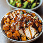 BBQ Chicken & Roasted Sweet Potato Bowls are a delicious, wholesome meal that brings together tender, barbecue-glazed chicken and sweet, caramelized sweet potatoes. This colorful dish is not only satisfying but also customizable with your favorite toppings and veggies, making it perfect for weeknight dinners or casual gatherings. Enjoy the delightful blend of flavors in every bite!