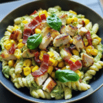 Chicken Corn Pasta Salad with Creamy Pesto and Bacon is a vibrant summer dish that combines tender chicken, sweet corn, and crispy bacon, all tossed in a rich creamy pesto sauce. Perfect for gatherings or quick meals, this salad can be served warm or cold, making it a versatile favorite. With its delightful mix of textures and colors, it’s sure to impress at any dining occasion.