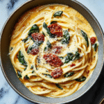 Creamy Sun-Dried Tomato Spaghetti with Spinach is one of those magical dishes that transforms a regular Tuesday night into a gourmet experience. Imagine the luscious creaminess coating perfectly cooked spaghetti, intertwined with flavorful sun-dried tomatoes and vibrant green spinach, creating an explosion of taste that dances on your palate. The aroma wafting from your kitchen will make even the pickiest eater drop their phone and run to the table.
