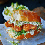 To achieve that crispy chicken goodness, start by marinating the chicken first. While it’s soaking up those flavors, whip up your Caesar dressing. Then, sear the chicken to golden perfection before assembling your sandwich with crunchy lettuce and fresh toppings.