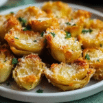 Crispy Parmesan Artichoke Hearts are a delicious appetizer made from tender artichoke hearts coated in a crispy layer of Parmesan cheese and breadcrumbs. These bites are baked until golden brown, creating a crunchy exterior while preserving the soft, flavorful interior. They make an excellent party snack or side dish, offering a delightful combination of flavors that pairs well with various dipping sauces.