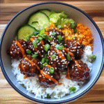 Korean BBQ Meatball Rice Bowls are a delicious fusion dish that combines tender meatballs made from ground beef or pork with flavorful Korean spices. Served over a bed of steamed rice, these bowls often include toppings like pickled vegetables, sesame seeds, and green onions. The sweet and savory sauce enhances the meatballs and ties all the flavors together, making it a satisfying meal for any occasion.