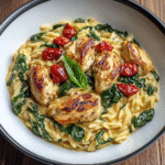 Slow Cooker Creamy Tuscan Chicken Orzo is a delightful dish that combines tender chicken, creamy sauce, and orzo pasta. The slow cooker method enhances the flavors, making it perfect for busy weeknights or meal prep. This recipe typically includes ingredients like sun-dried tomatoes, spinach, garlic, and Parmesan cheese, creating a rich and comforting meal that’s sure to please your family.