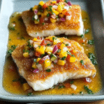 - Serve the baked fish topped with mango salsa.